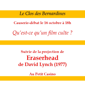 jeudi 16 octobre Clos des Bernardines(17 place de la République)puis au Cinéma le Petit… [+]