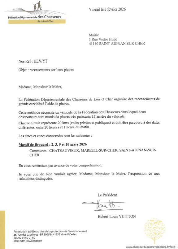 Dans le cadre du suivi des populations de grands cervidés, des comptages nocturnes aux phares seront réalisés sur le massif de Brouard les 2, 3, 9 et 10 mars 2026.