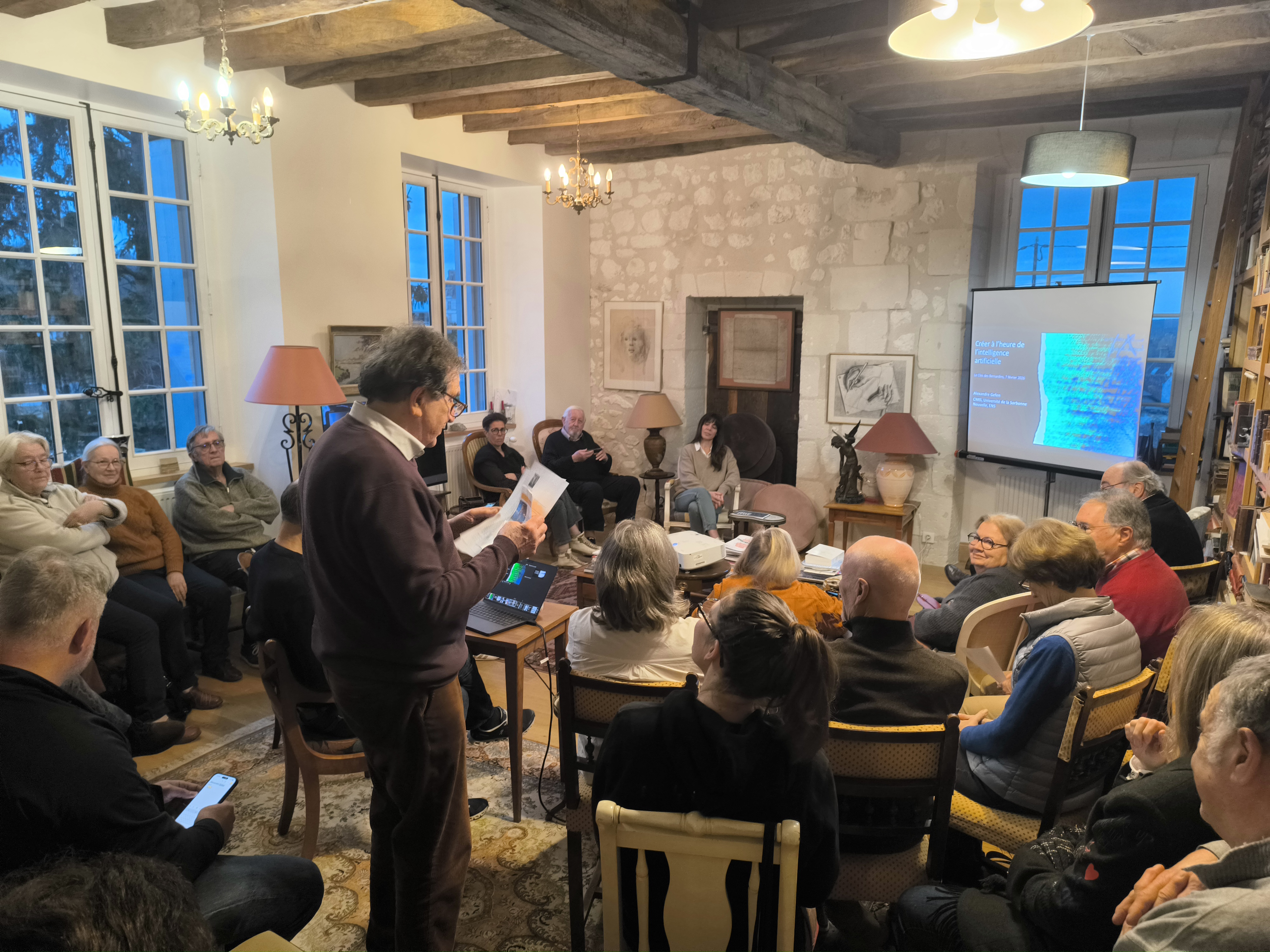 Vendredi 7 février, le Clos des Bernardines a accueilli Alexandre Gefen pour une conférence consacrée aux enjeux de la création artistique à l’ère de l’intelligence artificielle. Historien des idées et directeur de recherche au CNRS, il a proposé une réflexion accessible et stimulante sur l’IA comme outil de création, de co-création et de regard critique.