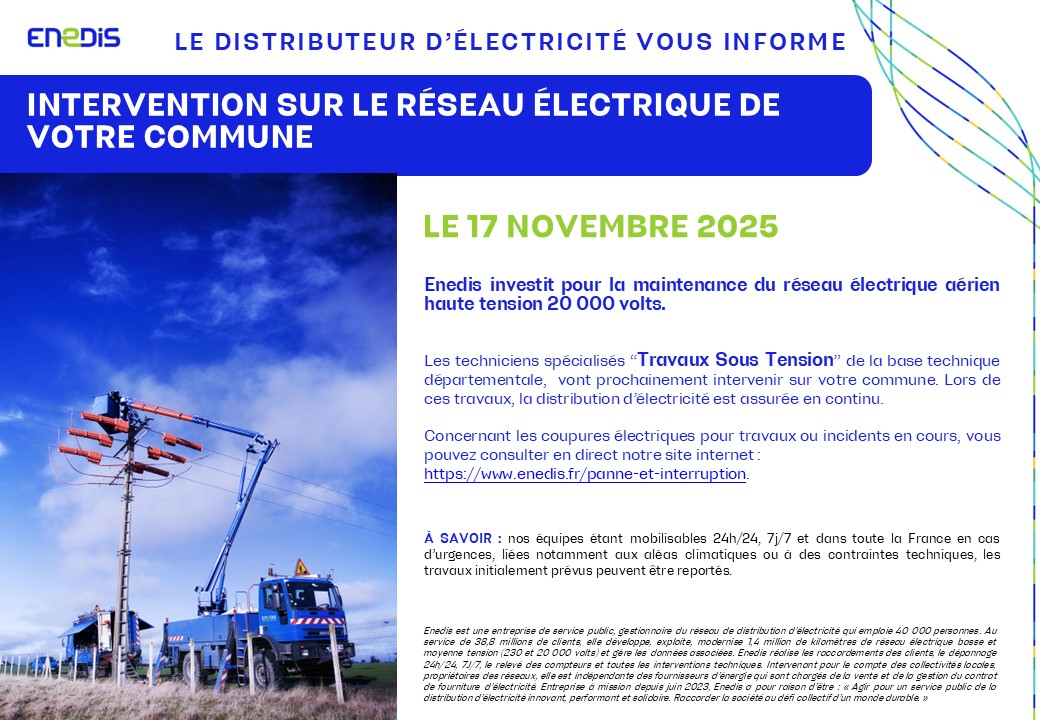 Concernant les coupures électriques pour travaux ou incidents en cours, vous pouvez consulter en direct notre site internet :