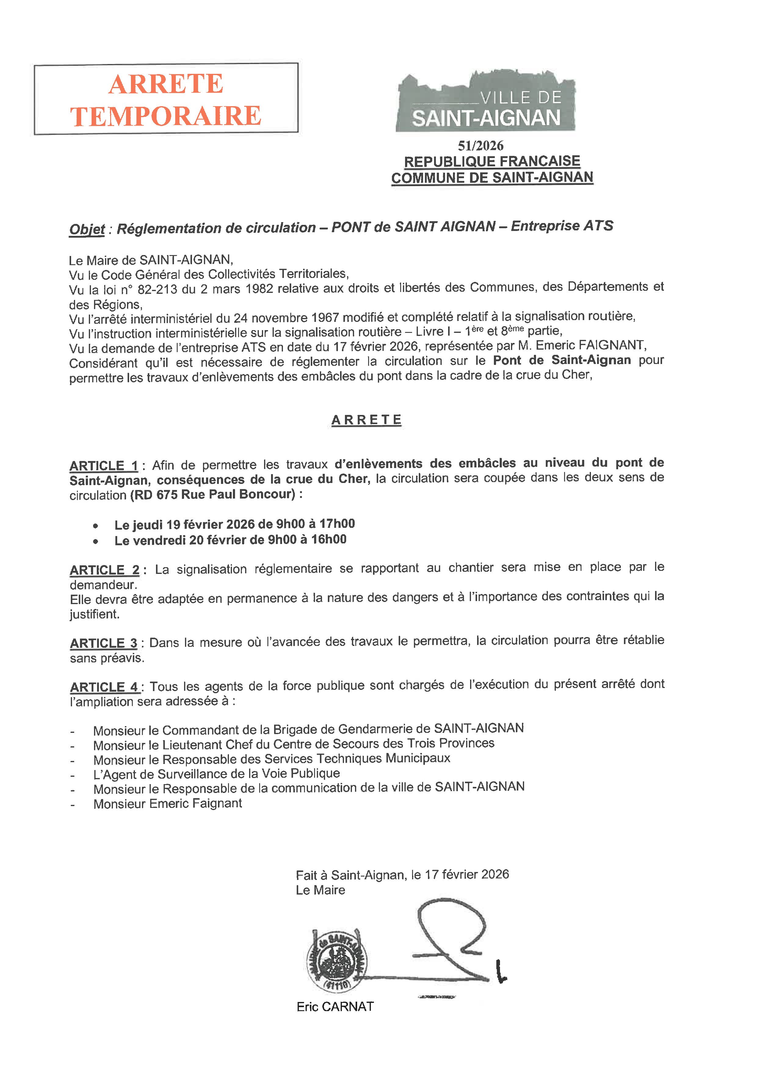 Fermeture du pont de Saint-Aignan / Noyers-sur-Cher