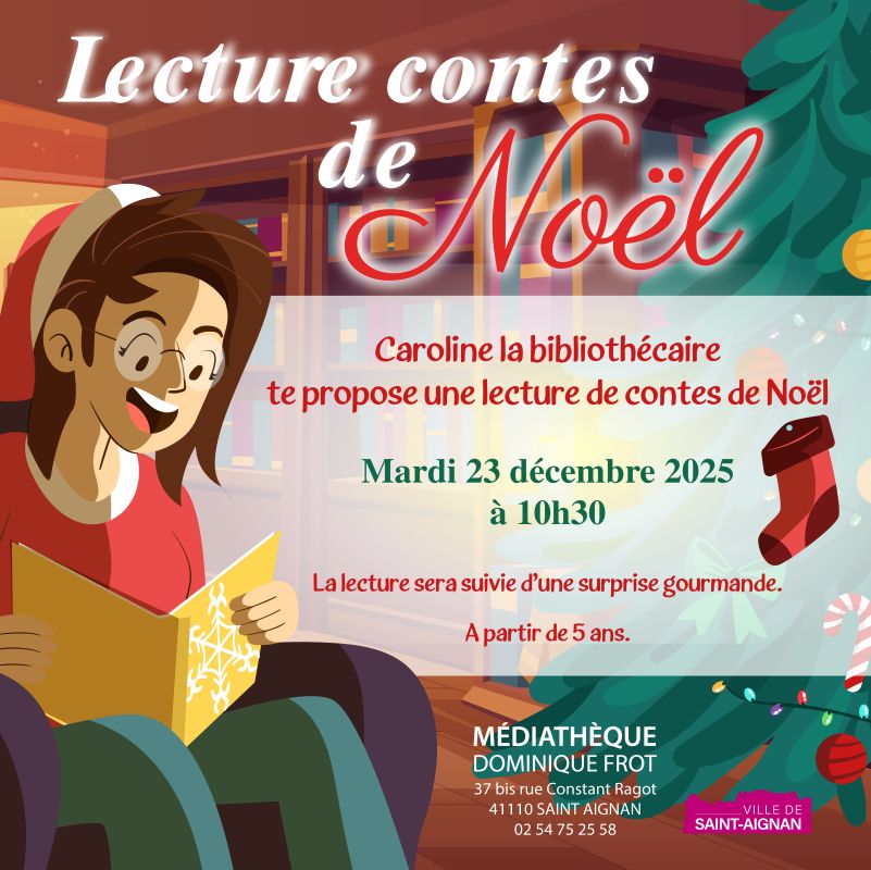 Lecture de contes de Noël mardi 23 décembre 2025à 10h30à la médiathèque